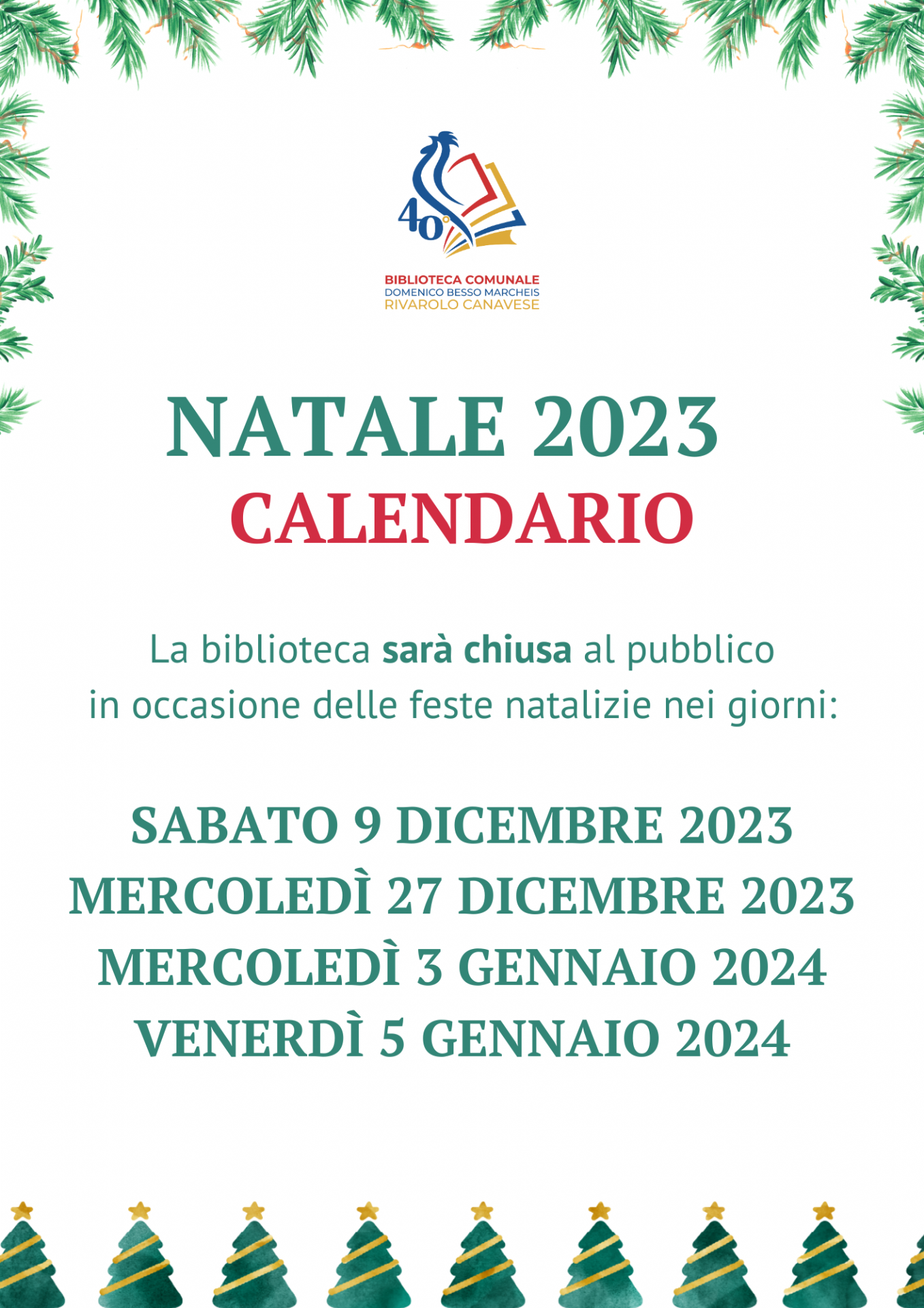La Biblioteca Comunale "Domenico Besso Marcheis" sarà chiusa al pubblico in occasione delle feste natalizie nei giorni:
