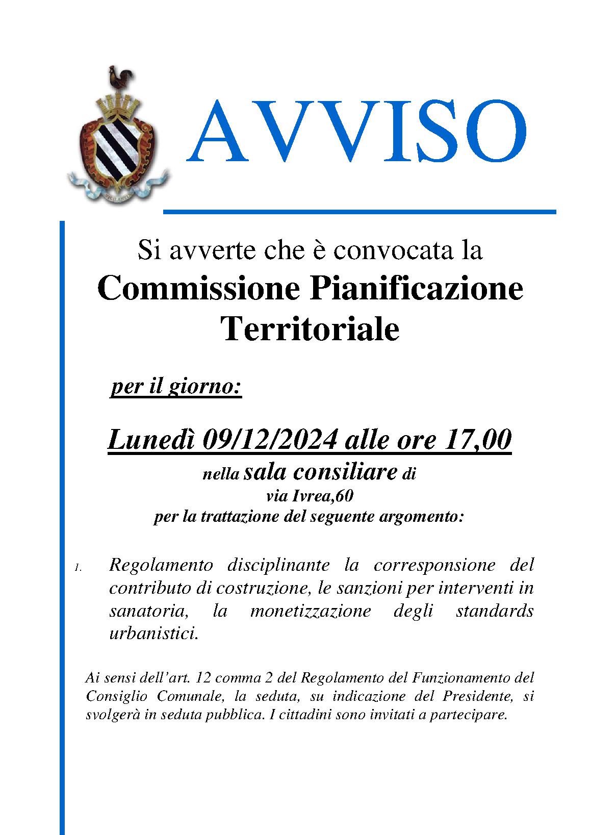 Ai sensi dell’art. 12 comma 2 del Regolamento del Funzionamento del Consiglio Comunale, la seduta, su indicazione del Presidente, si svolgerà in seduta pubblica. I cittadini sono invitati a partecipare.
