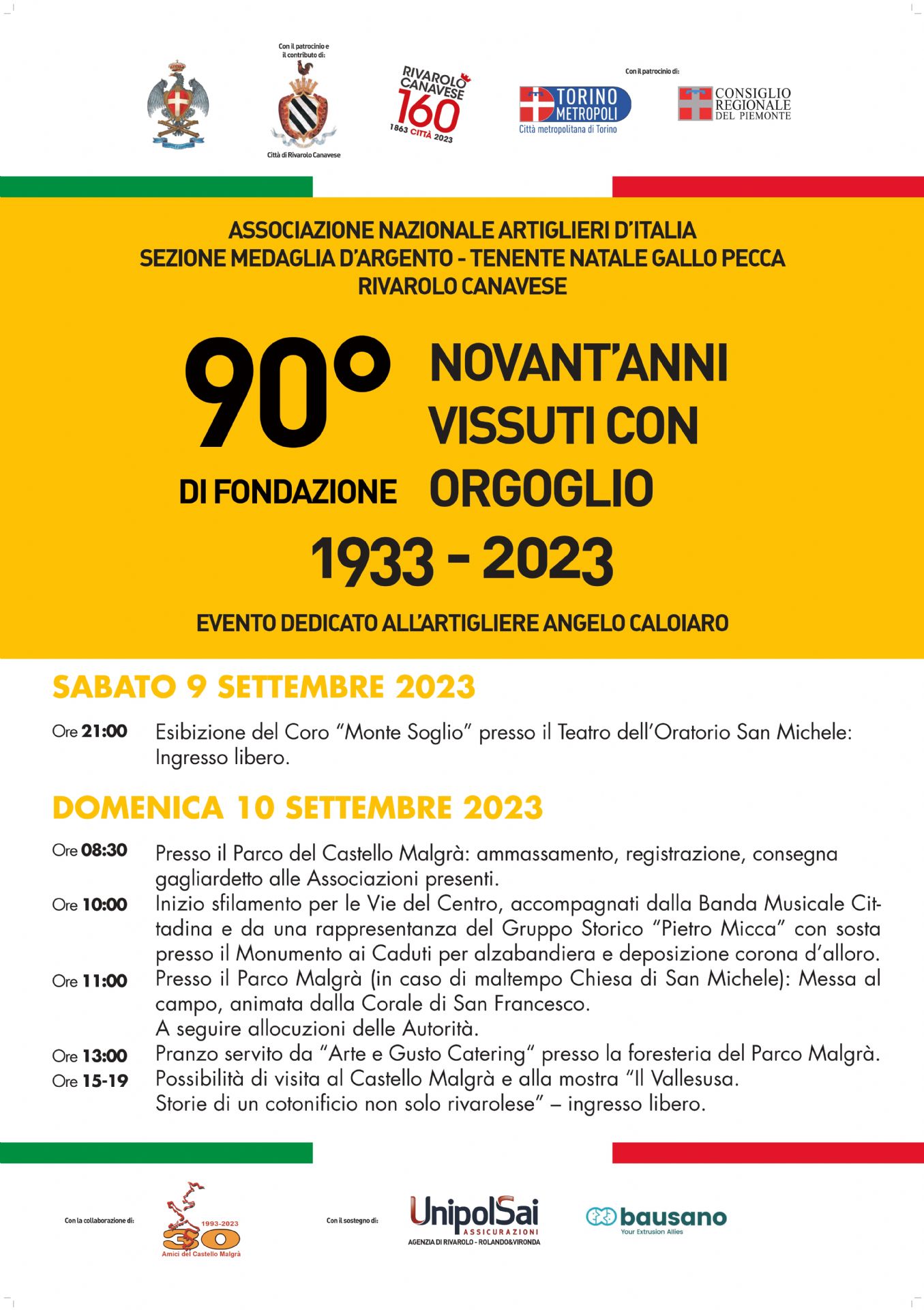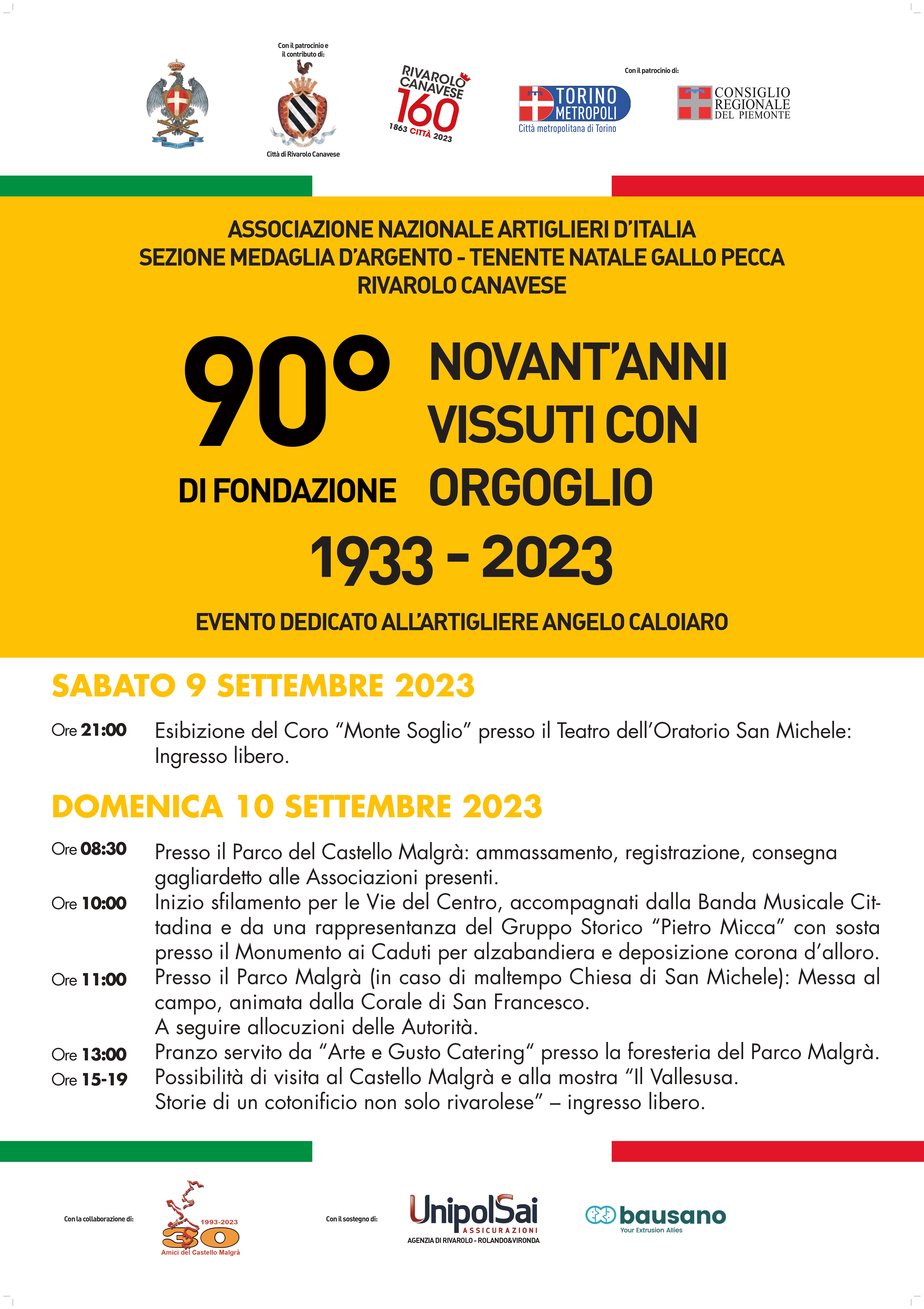 Associazione Nazionale ARtiglieri d'Italia - Sezione di Rivarolo Canavese - con il patrocinio e il contributo della Città di Rivarolo Canavese, il patrocinio della Regione Piemonte e della Città Metropolitana di Torino - con la collaborazione dell'Associazione Amici del Castello Malgrà