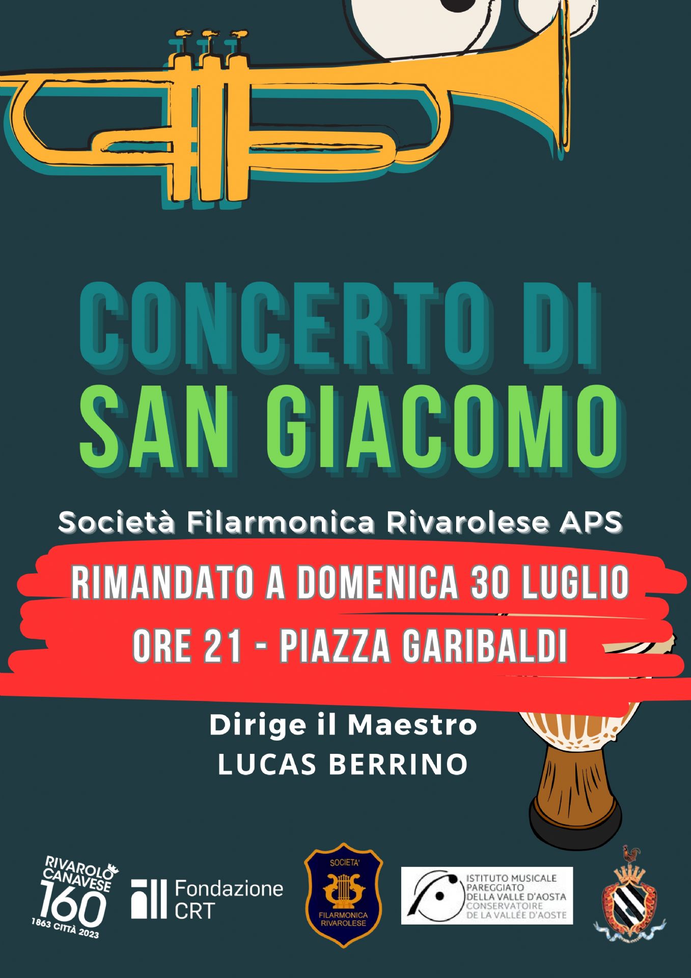 Causa incertezza meteo, il concerto della Filarmonica Rivarolese per la festa patronale di San Giacomo è rinviato a DOMENICA 30 LUGLIO - ORE 21 - Piazza Garibaldi.