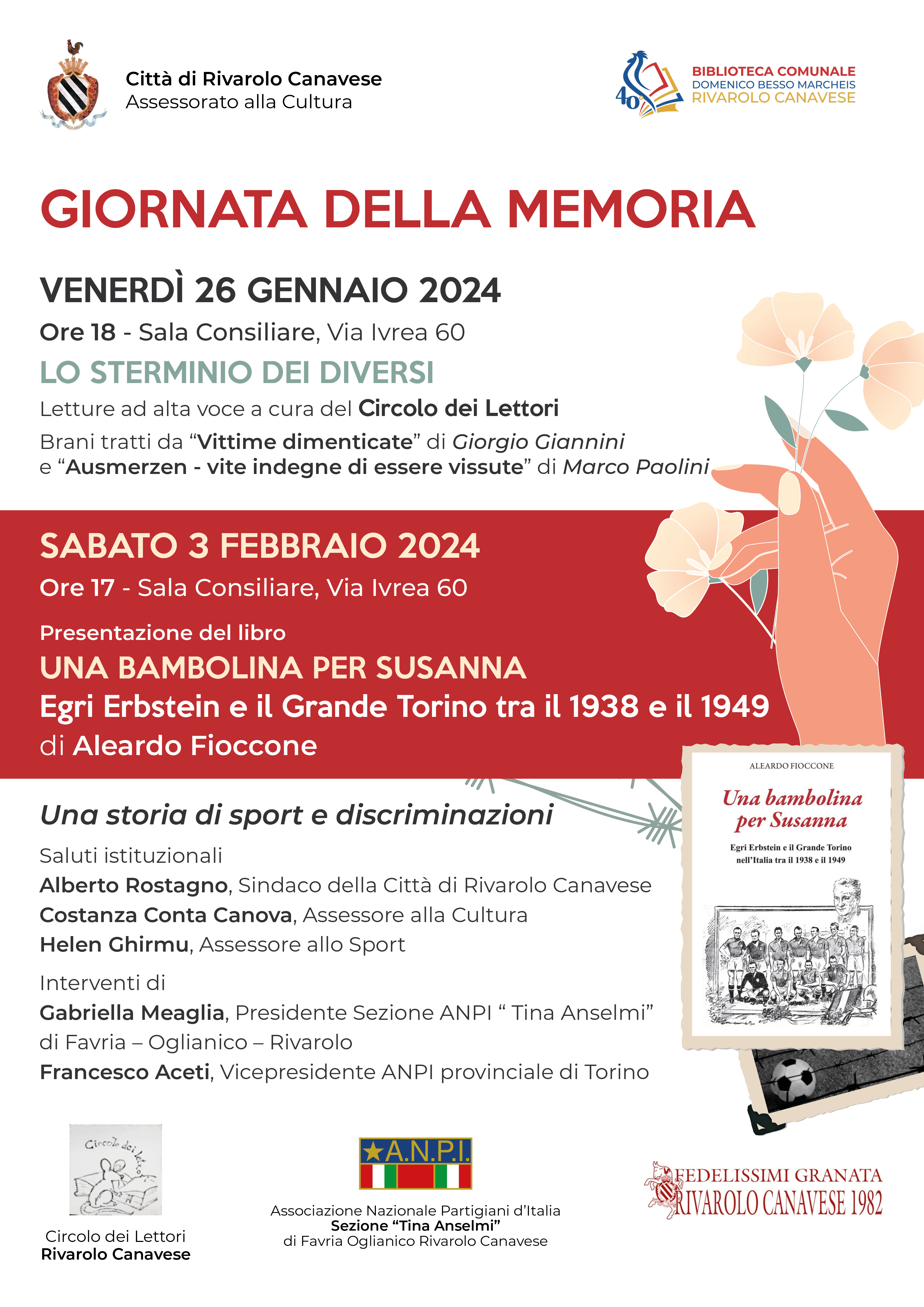Il programma di iniziative della Città di Rivarolo Canavese - Assessorato alla Cultura in occasione della ricorrenza della Giornata della Memoria 2024.