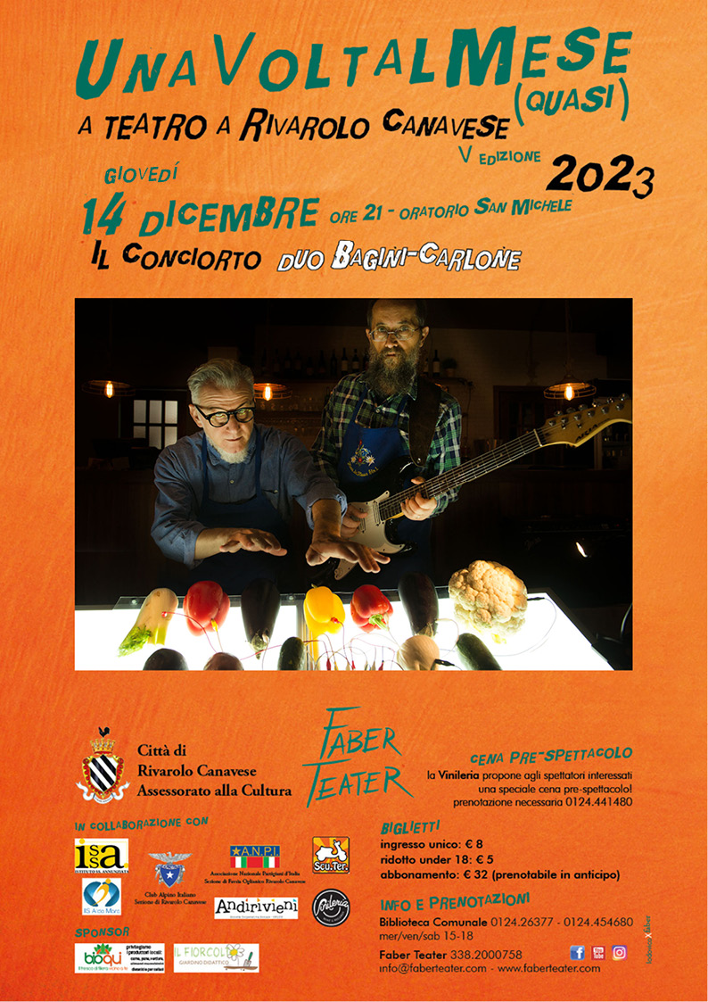 Giovedì 14 dicembre con lo spettacolo musicale Conciorto con Biagio Bagini, autore di Rai Radio2 di lunga data e scrittore per l’infanzia, e Gian Luigi Carlone, fondatore e musicista della Banda Osiris.