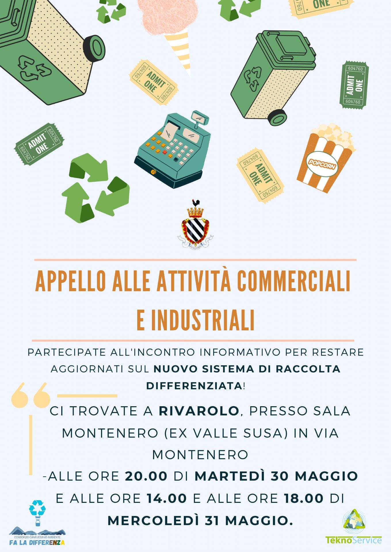 Teknoservice presenta il nuovo sistema di raccolta differenziata per le utenze non domestiche (attività industriali e commerciali) martedì 30 maggio alle ore 20 e mercoledì 31 maggio alle ore 14 e alle 18, presso il salone comunale di via Montero 12.