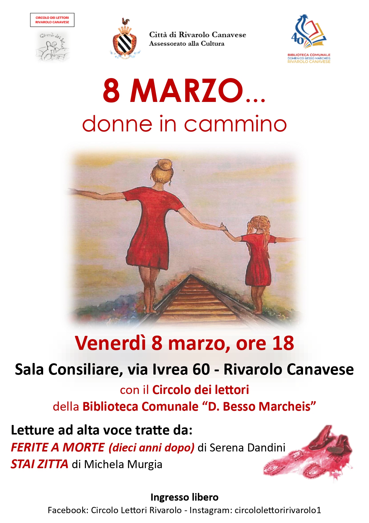 Venerdì 8 marzo 2024 alle ore 18 presso la Sala Consiliare (via Ivrea 60) si terranno le Letture ad alta voce a cura del Circolo dei Lettori della Biblioteca per celebrare insieme la Giornata Internazionale delle Donna.