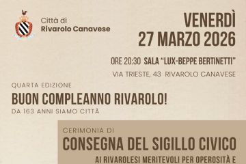 Si comunica che l’ANPI SEZIONE TINA ANSELMI” di FAVRIA OGLIANICO RIVAROLO CANAVESE ha comunicato che a causa delle condizioni meteo, venerdì...