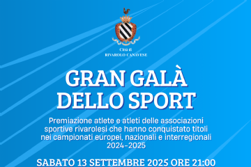 Sabato 13 settembre 2025, alle ore 21, presso il Palazzetto dello Sport del Centro comunale polisportivo in via Trieste 84, Rivarolo Canavese, si svolgerà il Gran Galà dello Sport.