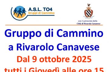 Il Comune di Rivarolo Canavese aderisce al progetto "Gruppi di cammino" dell'ASL TO4, finalizzato al contrasto alla sedentarietà e per promuovere il benessere attraverso l'attività fisica.