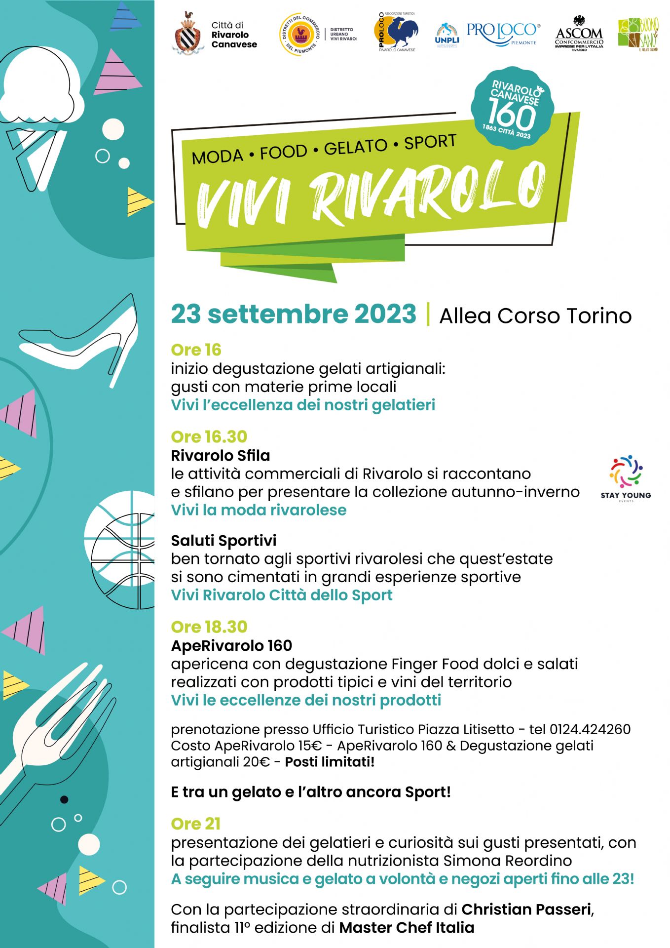 Sabato 23 settembre nell'allea di corso Torino a Rivarolo Canavese, dalle ore 16 VIVI RIVAROLO, un pomeriggio tra moda, enogastronomia e sport.