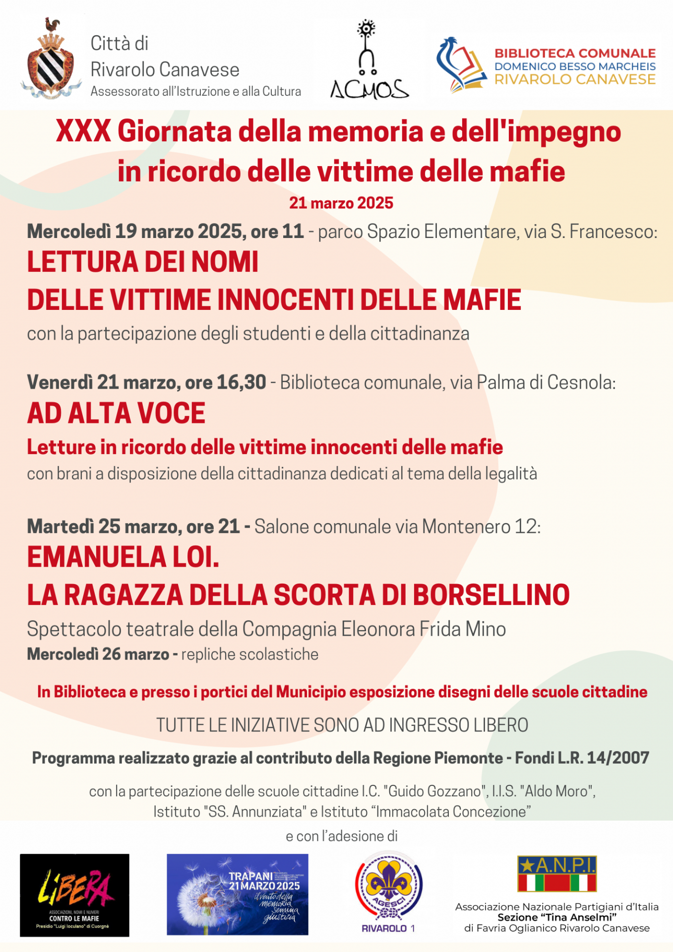 Martedì 25 marzo, ore 21 - Salone comunale via Montenero 12: