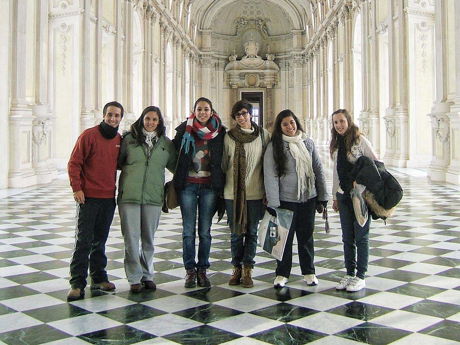 Nella Galleria di Diana a Venaria Reale, quattro giovani di Sunchales ospiti a Rivarolo Canavese (da "Rivarolo Canavese Città 1863-2013", pag. 150)