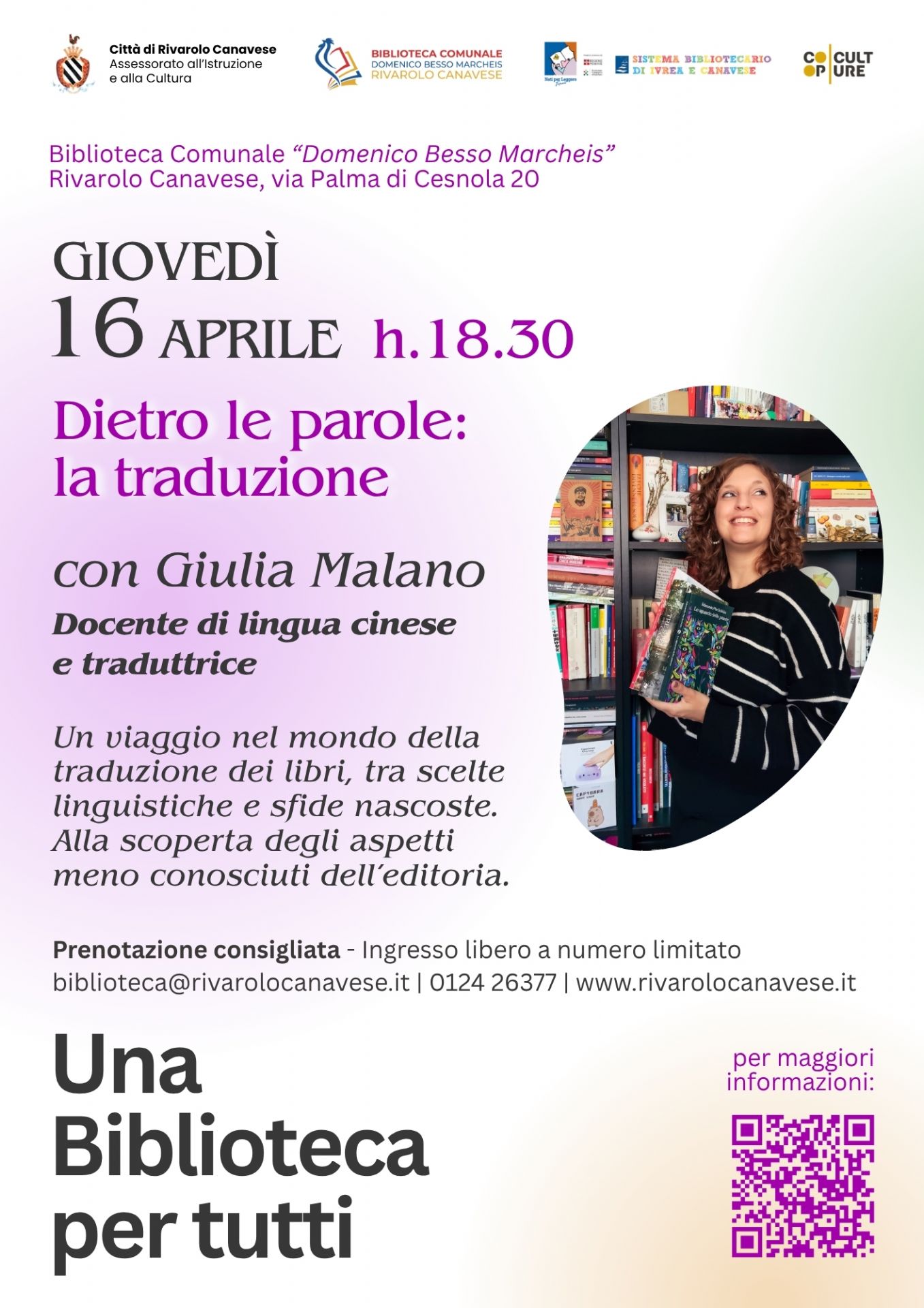 💜 Giovedì 16 aprile alle 18.30 inauguriamo la rassegna “Una Biblioteca per tutti” con un incontro dedicato al mondo della traduzione: