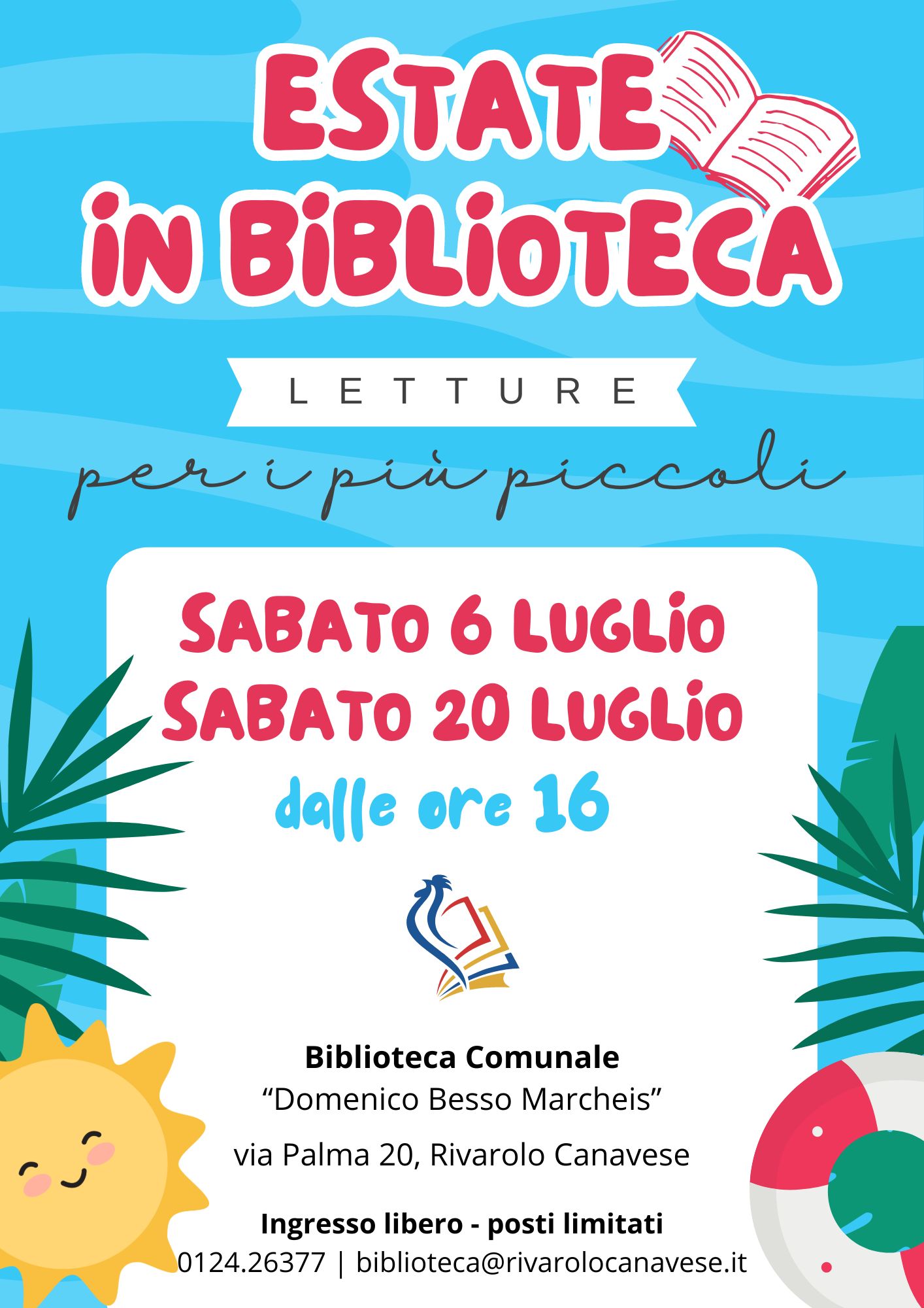 Sabato 6 e 20 luglio la Biblioteca Comunale "Domenico Besso Marcheis" organizza una lettura ad alta voce per i più piccoli.