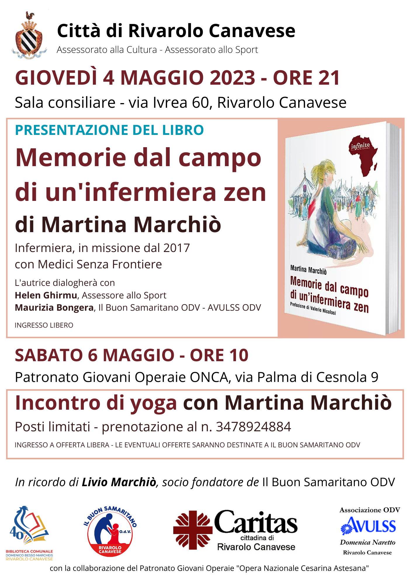 in Sala consiliare a Rivarolo Canavese – via Ivrea 60 – Martina Marchiò presenterà il libro Memorie dal campo di un’infermiera zen (Infinito edizioni, 2023).